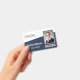 Personalize facilmente este crachá azul de nome e foto de funcionário personalizado com o logotipo da sua empresa e código qr ou código de barras. Disponível com diferentes cores de fundo e acessórios. Sem quantidade mínima de pedido.