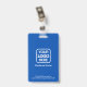 Moderno, simples e profissional crachá de funcionário de negócios em fundo azul com tipografia branca para combinar com o seu logotipo personalizado apresenta a foto do funcionário e cargo ou departamento na frente e Logotipo da Empresa e informações adicionais no verso.