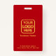 Crachá moderno, simples e profissional de funcionários empresariais em fundo vermelho com tipografia dourada para corresponder ao seu logotipo personalizado, a foto do funcionário e o título ou departamento profissional na frente e no logotipo comercial e informações adicionais na parte traseira.