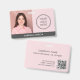Crachá de funcionário com código QR e logotipo rosa moderno em um design simples rosa e cinza, adequado para qualquer linha de negócios. Adicione logotipo, foto e nome do funcionário na frente. Nome da empresa, número de identificação do funcionário, endereço e quaisquer outros detalhes no verso, bem como um código QR; basta inserir sua URL e o código será criado.