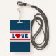 Design de amor com forma cardíaca em estilo náutico sobre fundo listrado a azul, vermelho e branco