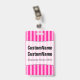 Características deste design do crachá um teste padrão da luz alterna - cor-de-rosa e profundamente - listras cor-de-rosa. Igualmente caracteriza um nome customizável no texto colorido preto dentro de uma área colorida luz. Há igualmente uma mensagem customizável sob o nome do esse poderia mostrar a informação tal como uma posição, ou uma profissão, ou um negócio/nome da empresa. [~Z0000176]
