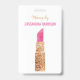 Artista Dourado Sequin Watercolor Beauty Salon Lipstick Crachá. Lâmpada dourada escura e batom cor-de-água rosa. Adicionar nome e título, personalizar fonte. Adicione informações à parte traseira do crachá, se desejar. Material de escritório de beleza. www.SamAnnDesigns.com