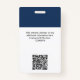 Personalize facilmente este Crachá de Nome Profissional Administrativo Personalizado sem foto, com o Código Qr de Digitalização e o logotipo de grande empresa. Um simples design de negócios em cores azul e branco marinho totalmente personalizável em tamanhos frontais e traseiros, fontes básicas e modernas sans-serif e um visual profissional e claro, perfeito para funcionários de pequenas empresas, chefe, convidados. Estes crachás de identificação de negócios estão disponíveis com ferro-velho, clipe metálico ou com retratável. Não há ordem mínima, mas economize dinheiro e desfrute dos descontos Zazzle por várias ordens!