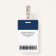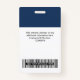 Personalize facilmente este Crachá de nome profissional administrativo personalizado sem fotos, com o Código de Bar de Digitalização e o logotipo de grande empresa. Um simples design de negócios em cores azul e branco marinho totalmente personalizável em tamanhos frontais e traseiros, fontes básicas e modernas sans-serif e um visual profissional e claro, perfeito para funcionários de pequenas empresas, chefe, convidados. Estes crachás de identificação de negócios estão disponíveis com ferro-velho, clipe metálico ou com retratável. Não há ordem mínima, mas economize dinheiro e desfrute dos descontos Zazzle por várias ordens!