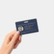 Aumente sua segurança corporativa com nosso Crachá de Foto de ID de Funcionário Personalizado. Este crachá azul marinho exumenta profissionalismo e funcionalidade, apresentando uma foto, nome e título personalizável do funcionário na frente. A parte traseira oferece espaço para um logotipo personalizado, nome e endereço da empresa ou texto personalizado, fornecendo uma identificação abrangente para o seu funcionarios. Com um rico fundo azul marinho e uma tipografia de cinzas clássica, este crachá oferece um design moderno e minimalista adequado a qualquer ambiente empresarial. Aumente a sua marca corporativa e as medidas de segurança com nossa solução personalizável de crachá de ID.