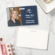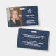Design criado a consultores, contabilistas e outros prestadores de serviços profissionais em mente. Este design é elegante e elegante e melhorará a imagem corporativa da sua empresa. O fundo com textura azul-marinho criará uma aparência de negócios executivos simples e coesa; enquanto a cortina, ainda que elegante, adicionará uma sensação moderna e acessível à sua marca. Personalize este crachá de funcionário com suas iniciais de negócios, nome de negócios, tipo de negócios e nome de funcionário e título profissional na frente. Na parte traseira, complete o design, adicionando as informações de contato da sua empresa e quaisquer informações adicionais de que você possa precisar.