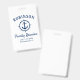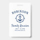 Crachá náutico de reagrupamento familiar temático, com orgulho mostrando seu nome de família, data de reunião e local em um roteiro elegante de caligrafia com texto na moda moderno. Este design apresenta o trabalho de arte de uma âncora de barco personalizada com uma placa de estilo de bússola em azul marinho em branco ou personaliza facilmente o fundo para qualquer cor desejada.