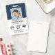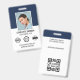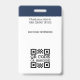 Crie uma aparência profissional com este crachá de identificação de na moda. Um modelo simples personalizado com sua foto de ID, nome, cargo, logotipo da empresa e símbolos de acreditação. Os detalhes de devolução estão no verso, juntamente com informações adicionais, e um código de barras ou código QR. Personalize o texto para se adequar à sua empresa. Ideal para muitos locais de trabalho diferentes, incluindo profissionais corporativos, consultores de negócios, varejistas, funcionarios médico e muito mais. Cores impressas: azul marinho muito escuro, preto e branco.