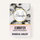 Nome crachá com um padrão moderno e elegante. Cinzas brancas, pretas e enfumaçados marmoreadas com fitas finas de espirais douradas ao longo do padrão. Um círculo branco com uma estrutura falsa-dourada colocada sobre cima com a sua inicial monograma e dentro de nome.