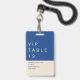 Crie seus próprios favores de casamento divertidos e cartões de lugar únicos para seus convidados com estes distintivos de casamento modernos Marseille Bleu. Adicione o número da mesa e encomende a quantidade para cada mesa individualmente para usar como cartões de lugar. A parte de trás sólida em ecru é em branco para que você possa escrever nomes ou afixar etiquetas pré-impressas. Para encomendas maiores a granel para se qualificar para mais economia, mude VIP MESA XX para algo genérico como MELHOR DIA JÁ. Em seguida, adicione os nomes dos noivos, data e local do casamento na parte inferior em azul escuro sobre ecru para finalizar o design. O design moderno simples de azul navy crocante, branco e ecru suave desses distintivos combina bem para eventos modernos e mais casuais. Distintivos de cordão personalizados como cartões de lugar e favores de casamento são uma maneira divertida e única de trazer um pouco