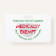 Crachá na moda branco, ISENTO MEDICAMENTE, mostrando MEDICAMENTE ISENTO em texto vermelho numa máscara de cinza pálida. O texto diz "OBRIGADO POR NÃO JULGAR", ISENTO MEDICAMENTE DE VESTIR COBERTURAS ROSTO. Este texto é PERSONALIZÁVEL para que você possa substituí-lo pelo motivo da isenção (por exemplo, autismo, asma, deficiência oculta, etc.) ou você possa adicionar seu nome, se desejar. O fundo é BRANCO. Isso dá uma resposta excelente a todos os olhares do juízo e é uma boa maneira de mostrar que o distanciamento social é necessário.