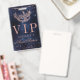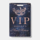 Passes VIP! Dê aos seus convidados especiais acesso ao seu aniversário, festa ou casamento com tema de baile de máscaras com este agradecimento moderno, chique e glamoroso com uma máscara de máscara de gala com brilho em rosa dourado com brilhos de diamante em rosa dourado sobre um fundo de aquarela azul marinho escuro.