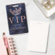 VIP passa! Dê aos seus convidados especiais acesso ao seu aniversário, festa ou bola de Mascarada de casamento temida com este obrigado moderno, chico e glamouroso que você usa uma máscara de mascarada dourada rosa com brilho rosa ouro brilhante faíscas de diamante em um fundo azul-d-água azul marinho escuro.