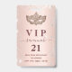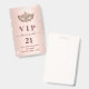 Um crachá moderno, na moda e glamouroso para um mascarada de 21 ruas (ou qualquer idade). Um fundo de gradiente rosa dourado com faíscas prateadas e uma máscara de mascarada. Com o texto: VIP. Personalizar e adicionar nome, idade, endereço/data. O nome é escrito com um moderno e escuro, rosa dourado, escrito em estilo manuscrito, com traços. Para manter as hastes, exclua apenas o nome da amostra, deixe os espaços ou emoji na frente e depois do nome. Traseira: sem design ou cor (menos caro)