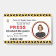 Mídia Pressione o logotipo ID da placa Personalize o Crachá para Imprensa, Fotógrafos, Voluntários e outros Profissionais. Substitua a fotografia e as informações pela sua para cada pessoa da sua empresa ou organização.