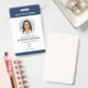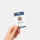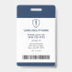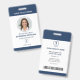 This professional physician identification badge features a clean minimalist design tailored for attending doctors and clinical specialists. The crisp white layout is bordered by solid navy blue bars at the top and bottom, providing a modern aesthetic that adheres to formal medical facility standards. It highlights the doctor name and role in a bold typographic hierarchy, ensuring immediate recognition in fast paced hospital environments.