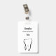 Crachá de nome com ilustração de um dente dentário feito com um contorno preto.
