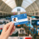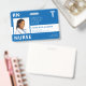 Funcionário de hospital de tipografia moderna ou de consultório médico RN foto personalizada personalizada de enfermeiro ID azul crachá horizontal com tipografia ousada, código de barras e seu logotipo. O Modelo +++++++++++ é fácil de personalizar com sua foto e detalhes em ambos os lados.