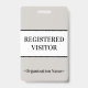 Este design de crachá simples apresenta a mensagem "VISITANTE REGISTRADO" e um nome de empresa personalizável ou outra mensagem personalizada. Um crachá como este pode ser usado para indicar que uma pessoa é um convidado conhecido e autorizado em uma empresa ou local de trabalho. [~Z0000307]