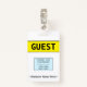 Este simples design de crachá apresenta a mensagem "CONVIDADO" e um nome personalizável da empresa ou outra mensagem personalizada. Um crachá como este poderia ser usado para identificar que alguém em um local de trabalho ou empresa é um convidado/visitante autorizado. [~Z0000307]