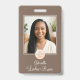 Mocha Brown with Cream Script Font Your Logo Here Photo Lashes and Brows Business Employee badge