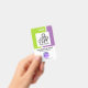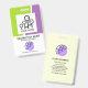 Um design moderno com ondas verdes e roxas fluindo do topo. Aqui está uma modelo para carregar fotos com um tamanho de 1.000 x 1.000 pix. Logo abaixo, na coluna branca, está o seu famoso nome e cargo, ao lado de um logotipo global opcional. O logotipo representa um conceito de design "mundo quebrado". Depois disso, o contato por e-mail fica perto da base do crachá.