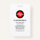 Um design de onda de curvatura azul e laranja é acentuado com uma impressão global subjacente no topo do crachá.
