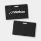 Este crachá de nome preto tem texto branco. Você pode editá-lo para mostrar um nome ou uma mensagem personalizada.
