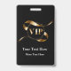 Crachás de entrada VIP sofisticados que você pode personalizar online a partir de nosso modelo editável. Projetados com um emblema gráfico sofisticado de tom dourado impresso em ambos os lados que diz VIP para um clube de associados sofisticado, evento especial ou passe de entrada para festas privadas exclusivas. Criados para a indústria do entretenimento, vida noturna ou estilo de vida e estão disponíveis com um cordão ou clipe de fixação. Faça com que seus convidados se sintam especiais com esses crachás elegantes.