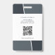 Professional identification card with photo, logo, barcode, and qr code templates included. This modern design style has shades of dark gray and black with white base. Similar design on back, with business address, website address, and a website qr code.
