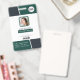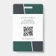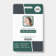 Professional identification card with photo, logo, barcode, and qr code templates included. This modern design style has shades of green and black with white base. Similar design on back, with business address, website address, and a website qr code.
