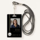 Crachá de ID corporativo simples e na moda que pode ser facilmente personalizado com a foto, o nome, a posição e o código de barras do seu funcionário. O design na moda apresenta um layout minimalista moderno e uma faixa de blocos em cinzas de pedra para se destacar da multidão.