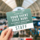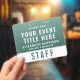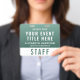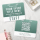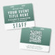 Create a calm, professional, and modern look with this large badge, designed for seamless identification and elevated event branding. Featuring a rich forest-to-sage green gradient, this badge offers a natural, refined aesthetic that stands out while remaining clean and easy to read. The layout clearly highlights your event title, staff name, and role, along with a bold “STAFF” (or VIP, VENDOR, CREW, etc.) designation for quick recognition. The reverse side includes a large scannable QR code, perfect for digital check-ins, schedules, credentials, or contact sharing -- making this badge both stylish and highly functional. Perfect for wellness retreats, yoga events, eco-friendly brands and sustainability conferences, outdoor festivals, nature-based gatherings, and corporate events seeking a softer, modern aesthetic.
