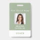 Add your custom text to this Church usher photo ID badge. Personalize this minimalist sage green and white photo ID badge. Customize the modern script with your name and custom text. Add your photograph to the photo template of this name tag. The clean clear green and white design is stylish and trendy. The minimalist script can be edited with your custom text. This would be a great badge for church volunteers, child care workers, Sunday school teachers, ushers, pastors or for a church conference, concert, or event or an employee ID badge.