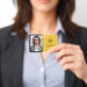 Personalized Modern Yellow and Black Minimalist Horizontal Employee ID Badge with Photo and Company Logo . This sleek badge features a custom logo, name, and title for a polished look. Perfect for businesses seeking a stylish and cohesive identity.