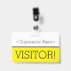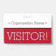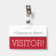 Este design de crachá elegante apresenta a mensagem "VISITANTE!" e um nome de empresa personalizável ou outra mensagem personalizada. Um crachá como este pode ser usado para indicar que um visitante ou convidado em um local de trabalho está autorizado a estar lá. [~Z0000307]