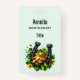Nome crachá com uma Rua. Imagem temática do Dia de Patrick. Uma ferradura preta e dourada sentada numa cama de trevo verde com moedas de ouro brilhante.