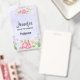 Crachá com um bonito design de aquarela. Flores rosa dispostas em um belo buquê.