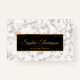 Chic, glam e moderno mármore profissional branco-ouro com fundo preto-ouro enquadrado para o seu texto. Nome de ouro realista devido à sobreposição de sombra. Voltar com um script de caligrafia de monograma de precioso enquadrado em ouro.
