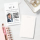 Crachá de Nome Minimalista Moderno com Foto. Preto e branco ou escolha as cores personalizadas. Adicione seu site ou endereço da Web de mídia social ao Código de verificação QR. Perfeito para pequenas empresas, marcas de empresas, independentes, salões de beleza, spas, caterárias, padarias, cafés, restaurantes e muito mais. Fácil de personalizar com suas iniciais de monograma, nome e informações de empresa, cargo, slogan, foto de funcionário ou até adicionar seu logotipo ou design de marca pessoal.
