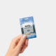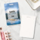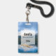 Crachá com uma bela foto da natureza. Montanhas ao fundo com um lago calmo e sereno em primeiro plano. Fotografia serena e relaxante.