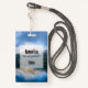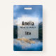 Crachá de nomes com uma bela foto da natureza. Montanhas no fundo com um lago calmo no primeiro plano. Fotografia serena e relaxante.