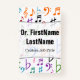 Características que deste design do crachá um teste padrão que envolve a vária música nota e os símbolos da notação de música coloriram uma variedade de cores. Igualmente caracteriza um nome personalizado no texto colorido preto dentro de uma área colorida luz. Há igualmente uma mensagem customizável sob o nome do esse poderia mostrar a informação tal como uma posição, ou uma profissão, ou um negócio/nome da empresa. [~Z0000176]