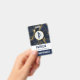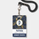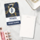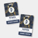 Crachá personalizado com na moda e fundo elegante de marinho azul e dourado. Camadas sobre o topo é um círculo com uma borda falsa de folha de ouro com o seu dentro inicial.