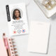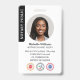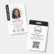 Faça uma impressão profissional com este na moda e o crachá moderno de identificação. Um modelo de dois lados mostrando sua foto de identificação dentro de um quadro circular e personalizado com seu nome, detalhes comerciais, três símbolos de acreditação, logotipo e um código QR digitalizável. Personalize o texto para se adequar à sua empresa. Perfeito para um Notário Público, Agente de Assinatura de Empréstimo, Agente de Entrega de Confiança Notária Certificada, CNTDA, Notário Móvel, Apostille, profissional legal ou outro funcionário de negócios. Design cores impressas: preto, cinza e branco. Compre a coleção on-line para obter ideias e suprimentos de produtos mais populares, projetados para notários!