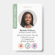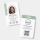 Faça uma impressão profissional com este na moda e o crachá moderno de identificação. Um modelo de dois lados mostrando sua foto de identificação dentro de um quadro circular e personalizado com seu nome, detalhes comerciais, três símbolos de acreditação, logotipo e um código QR digitalizável. Personalize o texto para se adequar à sua empresa. Perfeito para um Notário Público, Agente de Assinatura de Empréstimo, Agente de Entrega de Confiança Notária Certificada, CNTDA, Notário Móvel, Apostille, profissional legal ou outro funcionário de negócios. Design cores impressas: verde-sábio, preto e branco. Compre a coleção on-line para obter ideias e suprimentos de produtos mais populares, projetados para notários!