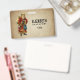 Um nome de etiqueta com um velho Pai Natal do Mundo Vintage. Papais noeis clássicos do velho mundo, vestindo seu famoso casaco vermelho e carregando um cheio de brinquedos. Estes Papais noeis antiquados, são magros e têm uma bengala para viajar pela terra dando brinquedos a todas as raparigas e rapazes. Fundo antigo do estilo de pergaminho.
