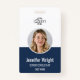 Custom employee photo company badge. Sleek round photo design, personalized name, title, occupation, location & other important information. Editable company logo, brand logo, event insignia and so forth.