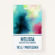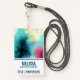 Nomeie o crachá com um design legal e abstrato. As aquarelas se misturam e se misturam para criar a ilusão de uma imagem espacial. Verde com espirais de púrpura, amarela e vermelho-claro misturados com uma mistura de pontos brancos e estrelas. Uma legal criação de triquetes.